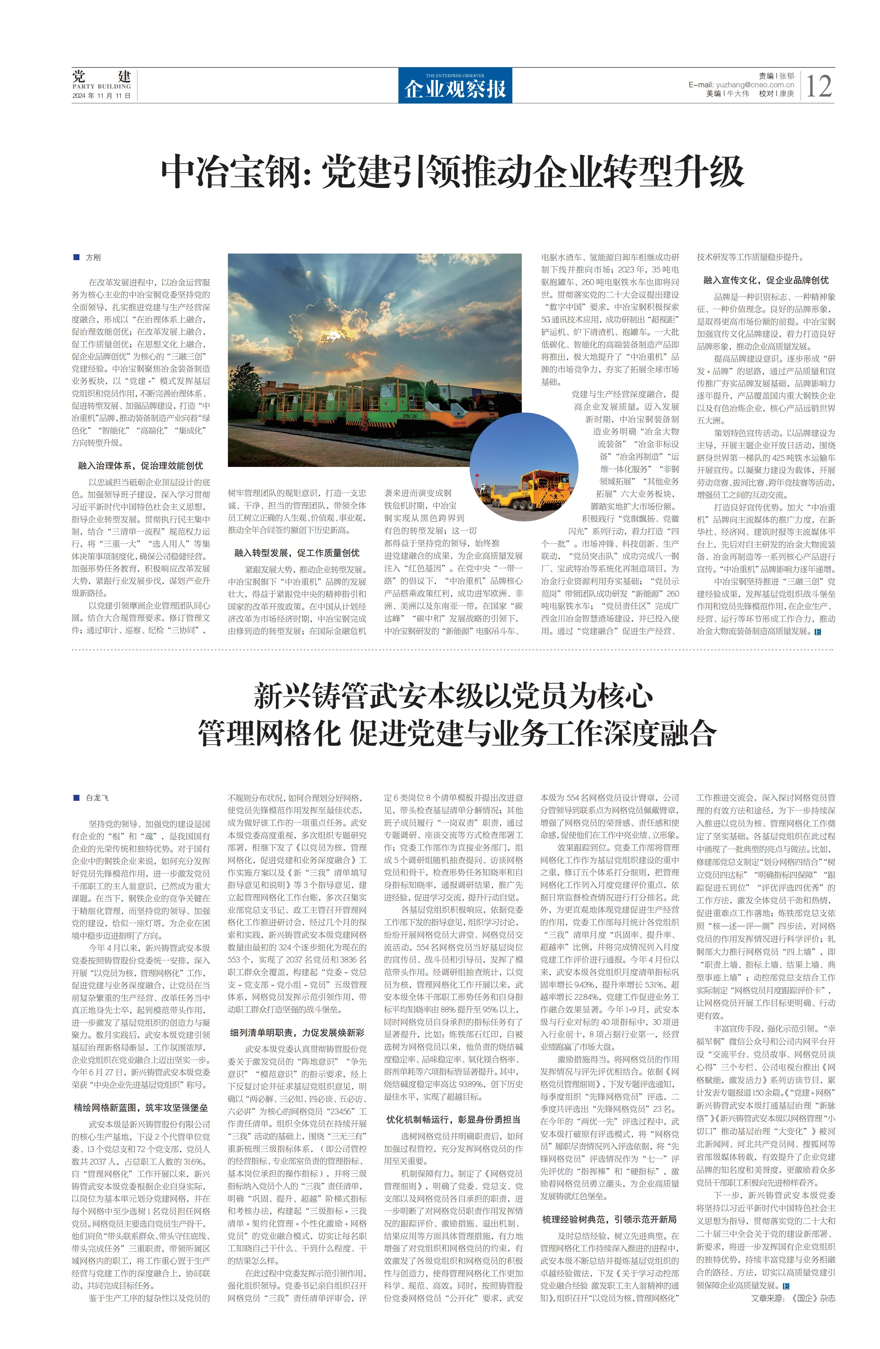 《企業(yè)觀察報》:中冶寶鋼黨建引領推動企業(yè)轉型升級
